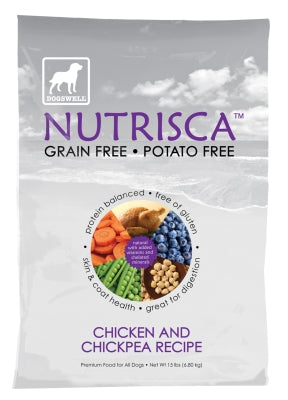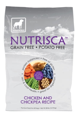 NUTRISCA Chicken & Chickpea Recipe is made with simple, real food ingredients. Thoughtfully crafted with real chicken as the number one ingredient, Nutrisca Chicken & Chickpea recipe is balanced with peas, chickpeas and real fruits and vegetables. It's formulated with antioxidant nutrients and omega fatty acids to help support your dog's health and well-being. Every recipe is free of grains, potatoes, corn, wheat, soy, artificial colors, artificial flavors and artificial preservatives.Key Benefits
