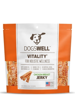 Nothing says "good dog" like an irresistible Jerky treat from Dogswell. They have been hard at work to create the same great Chicken Breast Jerky you've loved for years in an improved U.S.A.-sourced recipe. Dogswell Chicken Breast is made with the goodness you need for those special moments. They start with naturally-delicious, high-quality protein. Then, they add a boost of flaxseed and Vitamins A & E for a treat that helps keep them healthy and happy. Now that's the ultimate reward.Key Benefits
