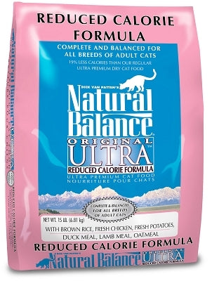 Natural Balance Original Ultra Reduced Calorie Formula Dry Cat Food contains 17% fewer calories per cup than Natural Balance Ultra Premium Dry Cat Food. It is made specifically for overweight, less active and senior cats. It helps kindle their appetite—all with a taste that cats crave!