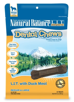 Natural Balance Dental Chews L.I.T. with Duck Meal Formula is scientifically formulated to support healthy teeth and gums by encouraging your dog’s natural chewing instinct. Made with a limited list of premium ingredients, these grain-free chews offer a delicious mix of flavors that your dog will love! Key Benefits