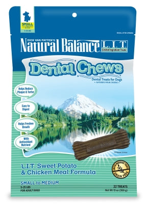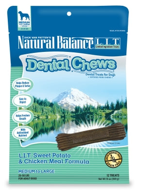 Natural Balance L.I.T. Sweet Potato & Chicken Meal Formula Dental Chews are scientifically formulated to support healthy teeth and gums by encouraging your dog’s natural chewing instinct. Made with a limited list of premium ingredients, these grain-free chews offer a delicious mix of flavors that your dog will love!Key Benefits