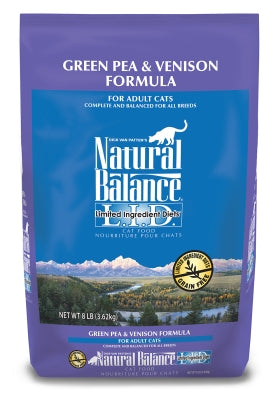 Designed with a limited number of premium protein and carbohydrate sources, this grain-free cat food is an excellent choice when seeking alternative ingredients for your cat. Natural Balance L.I.D. Limited Ingredient Diets Green Pea & Venison Dry Cat Formula is designed to support healthy digestion and to maintain skin and coat health—all while providing complete, balanced nutrition for adult cats.Key Benefits