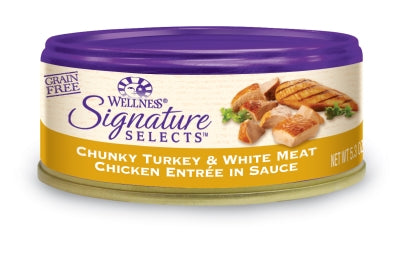 Wellness Signature Selects gourmet cat food naturally delivers the variety your cat craves. Each signature recipe features delicate cuts of real meat and seafood in delicious sauces. Each simple recipe is prepared by hand and packed with taste.