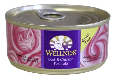 Wellness Canned Beef & Chicken Formula provides two sources of high quality protein and essential fatty acids, made with high quality beef and chicken free of added growth hormones and steroids.