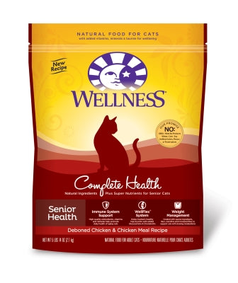 Wellness Senior Deboned Chicken & Chicken Meal uses carefully chosen, authentic ingredients, for the complete health of your senior cat. This special recipe provides whole-body nutritional support and promotes overall fitness and longevity, providing the optimal balance of nutrient-rich whole foods to fulfill the unique health needs of your aging cat.