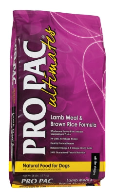 PRO PAC Ultimates Lamb Meal & Brown Rice Formula is nutritionally balanced and fortified with proper levels of Omega-6 and Omega-3 fatty acids to help support a healthy skin and hair coat. L-Carnitine helps burn fat and maintain lean muscle mass to support a healthy, active lifestyle. PRO PAC Ultimates is fortified with chelated minerals to allow for higher absorption helping digestion, immune function and healthy skin and hair coat.