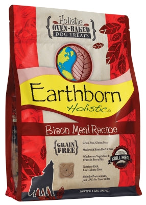 Earthborn Holistic Bison Meal Recipe Biscuits are tasty, low-calorie treats for dogs. Grain and gluten-free, this hearty formula is packed with high-quality bison meal and blended with vegetables and fruits for optimal palatability. Powered by the cutting-edge ingredient, Antarctic krill meal, these treats are a nutrient-rich source of Omega-3 fatty acids and protein. Treat your dog to something he can enjoy while still maintaining a healthy, active lifestyle.Key Benefits