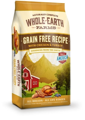Whole Earth Farms dry food recipes were created as a truly holistic food at a value price, without compromising the quality of your beloved pet’s food. They take the best, healthy ingredients from the earth and mix them into a delicious daily meal. With multiple protein sources, vitamins and minerals, Whole Earth Farms provides your dog with the best the earth has to offer. Multiple proteins including chicken meal and turkey, plus dried blueberries, flavorful rosemary, sage and thyme are just a few of the nutritious ingredients you will find in Whole Earth Farms Grain-Free Recipe with Chicken & Turkey Dog Food. Your dog deserves the very best when it comes to nutrition, and Whole Earth Farms is exactly that.