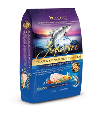 Made with trout and salmon from the cold waters of the Northwestern USA. Trout provides a high-quality source of complete protein loaded with essential heart-friendly Omega-3 Fatty Acids, is rich in Vitamin B12, and provides Niacin, B6, Phosphorus and Selenium. Zignature’s nutritionally correct ratio of fruits and vegetables rounds out the recipe with powerful antioxidants, and fiber-rich low glycemic carbohydrates.Key Benefits